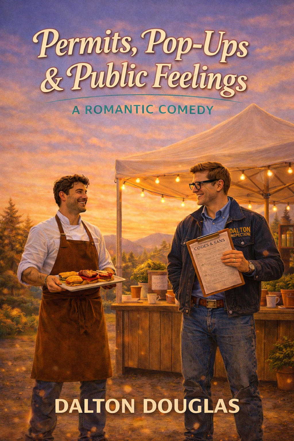 Frosting, Fire Codes & Feelings is a cozy, low-angst M/M romantic comedy where a meticulous traveling baker swears he’s “just here to deliver cake”… until Dalton adopts him and the volunteer fireman keeps showing up to inspect his setup like fire code is a love language.