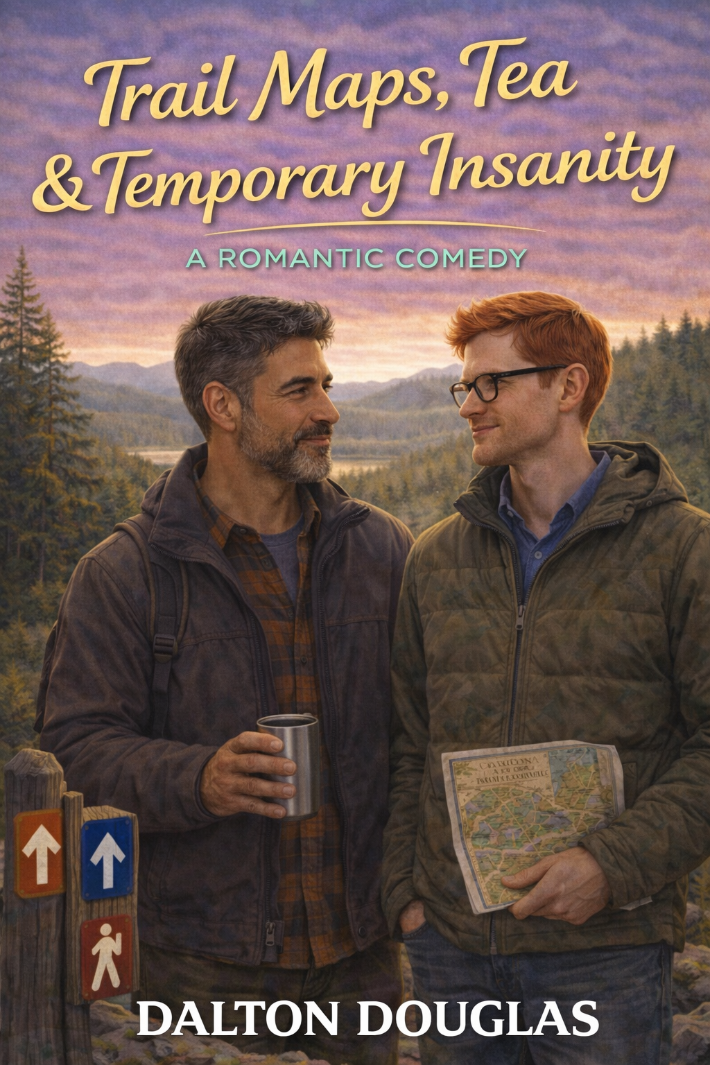 Trail Maps, Tea & Temporary Insanity is a warm, funny small-town M/M romance about a meticulous cartographer, a maddeningly calm outdoor guide, and the trail project that leads them straight into love.