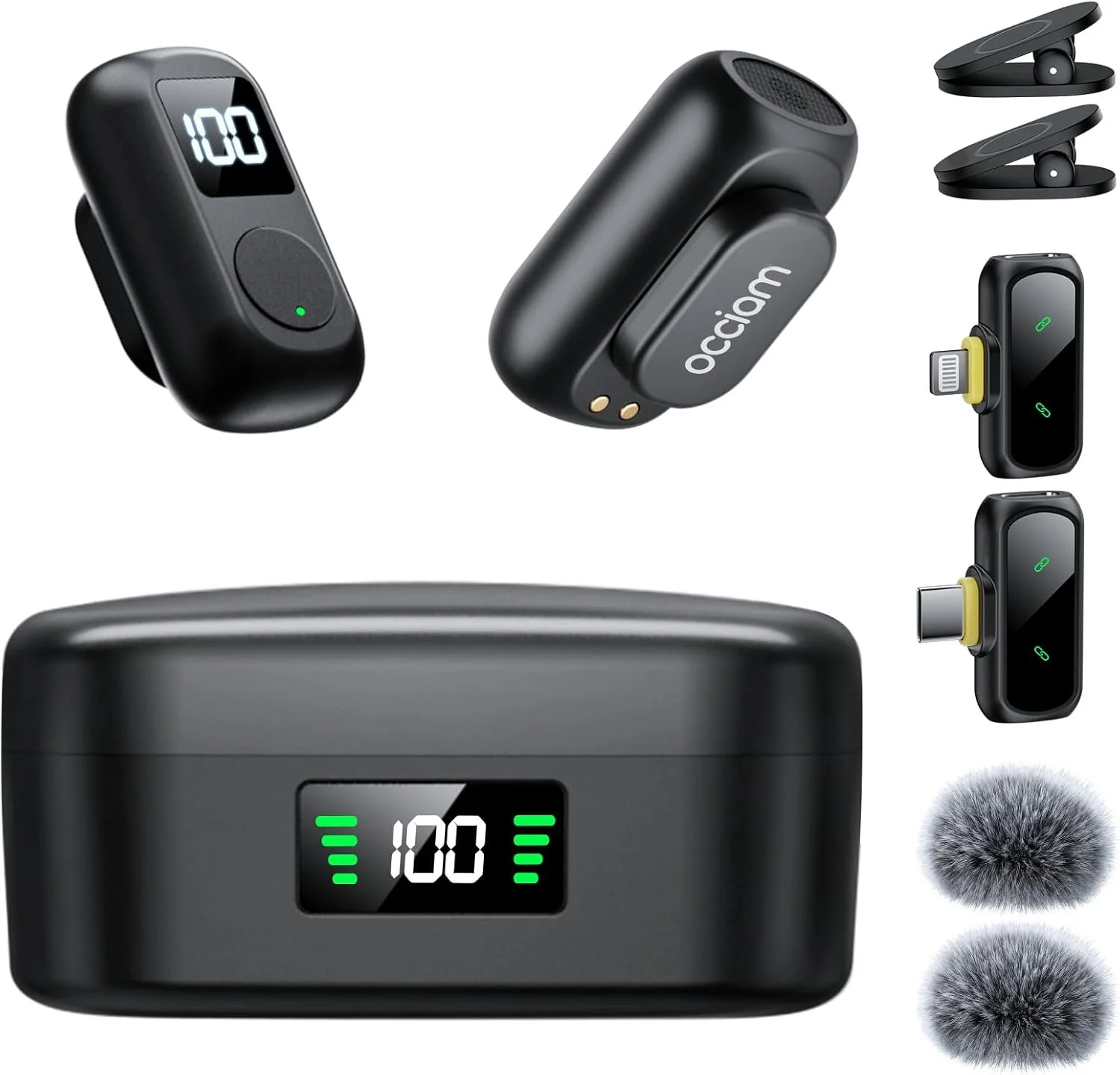 This professional wireless lav mic delivers studio-quality sound with AI noise reduction, real-time battery displays, and up to 54 hours of total use. Lightweight, plug-and-play, and compatible with phones, tablets, and laptops—ideal for creators on the go.