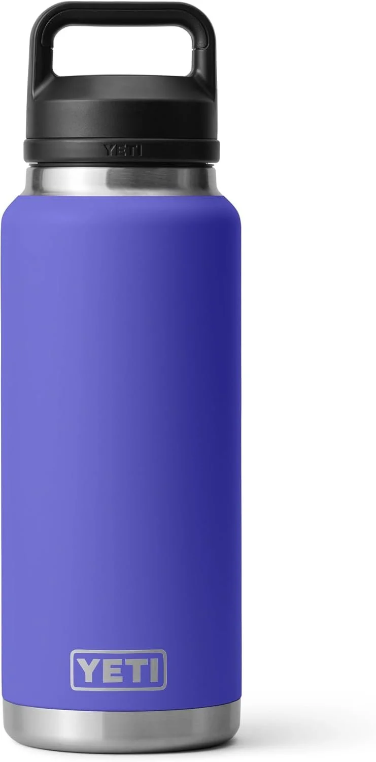 YETI Rambler 36 oz insulated bottle keeps drinks cold or hot for hours with a durable, leakproof Chug Cap—perfect for all-day hydration.