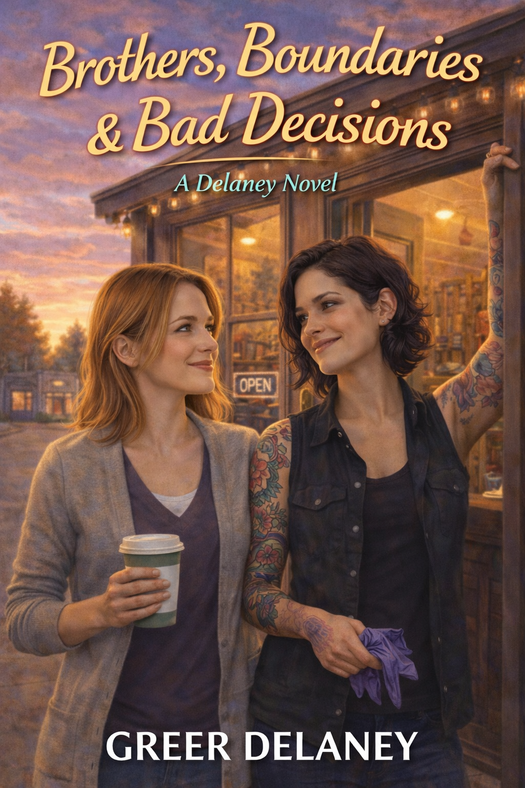 Brothers, Boundaries & Bad Decisions is a warm, chaotic small-town romance about a family lawyer, a tattoo artist, and the dangerous possibility that belonging might look a lot like falling in love.