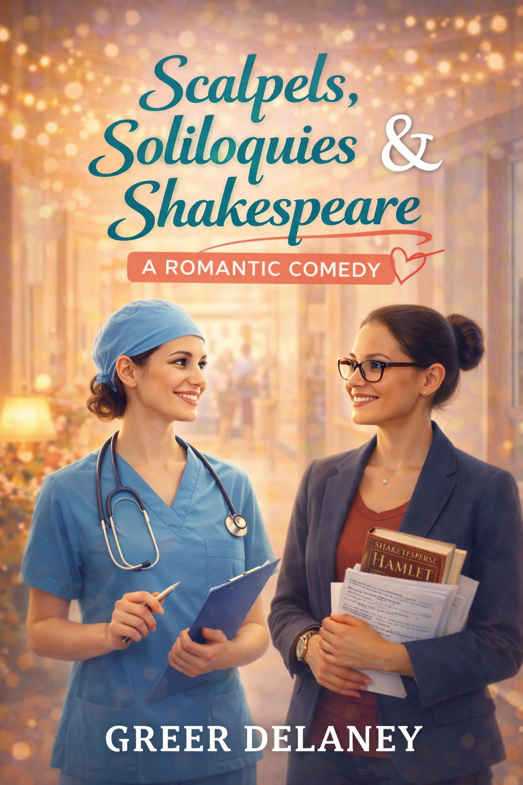 Scalpels, Soliloquies & Shakespeare — Brilliant surgeon Dr. Tessa Park likes control; English teacher Vivian Klein likes her rules—especially the ones that keep her heart safe. Delaney has other plans: one meet-cute, one Shakespeare spiral, and a town determined to turn tension into a happily-ever-after.